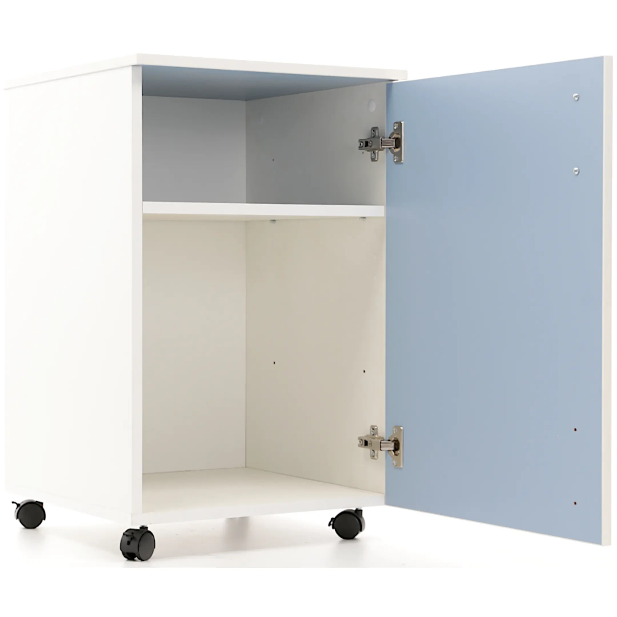 • Оборудована четырьмя пластиковыми колесами, диаметр 40 мм, два передних колеса снабжены стопорами;