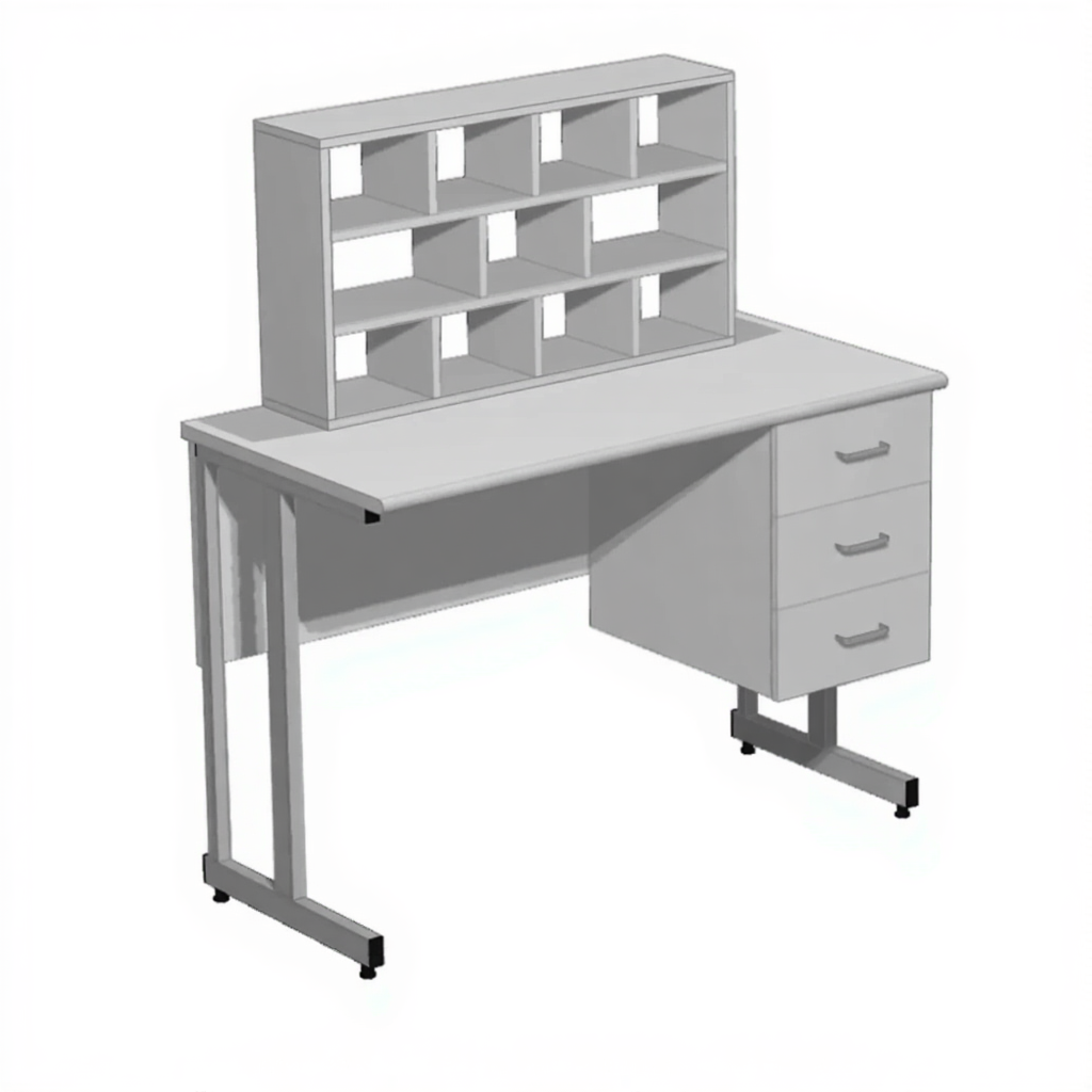 Стол лабораторный для микроскопирования СМ-201 «Премиум» (столеш. постформинг серый, каркас серый) предназначен для размещения оборудования и проведения работ по микроскопированию. Модель оснащена тумбой с тремя выдвижными ящиками справа и надстройкой с 10 ячейками. Каркас выполнен из стального профиля с полимерно-порошковым покрытием, столешница из постформинга 26 мм.