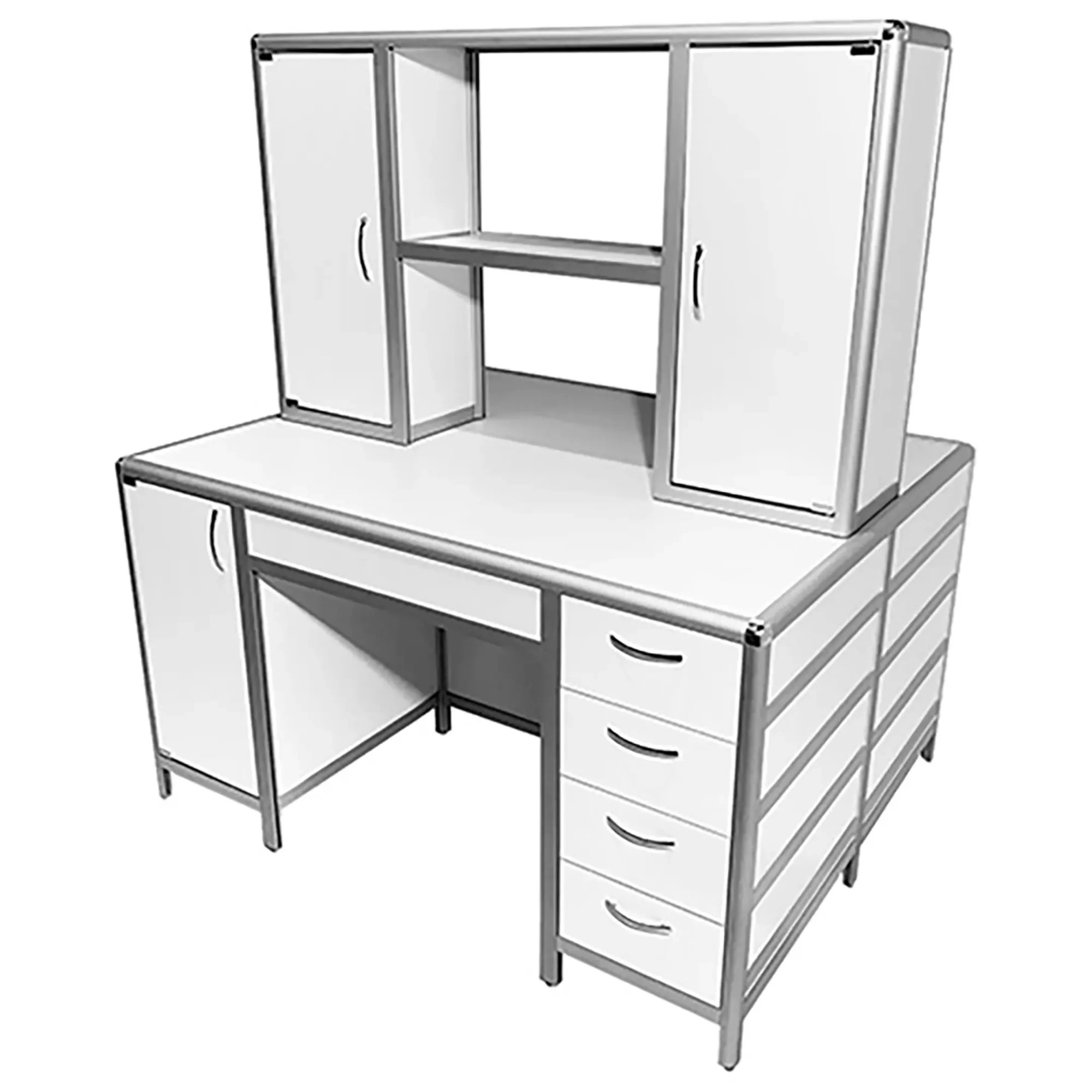Стол лабораторный островной MED 11.004al с надстройкой (белый)