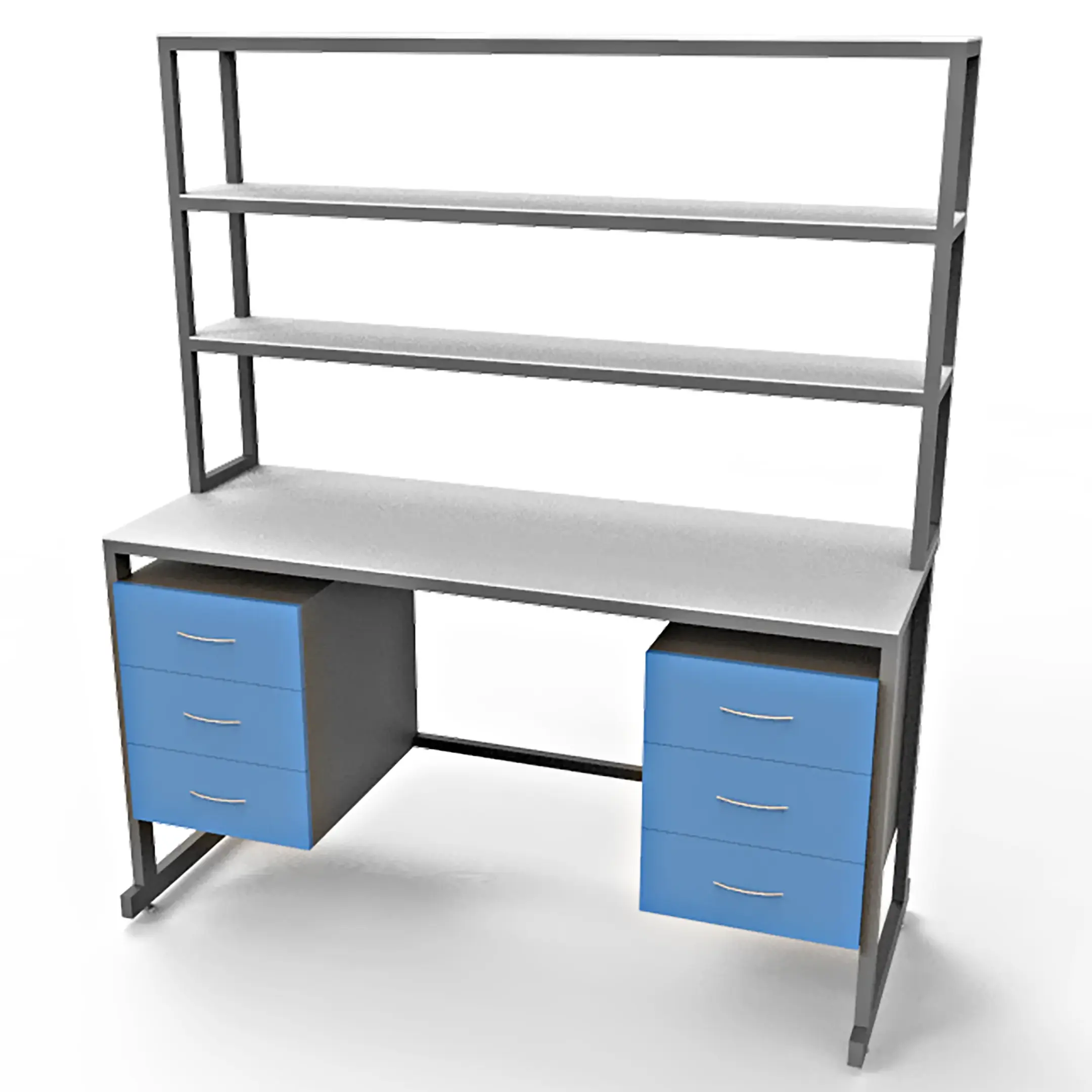 - Функциональная надстройка — три полки для дополнительного размещения оборудования и материалов, общая высота стола с надстройкой 1850 мм.