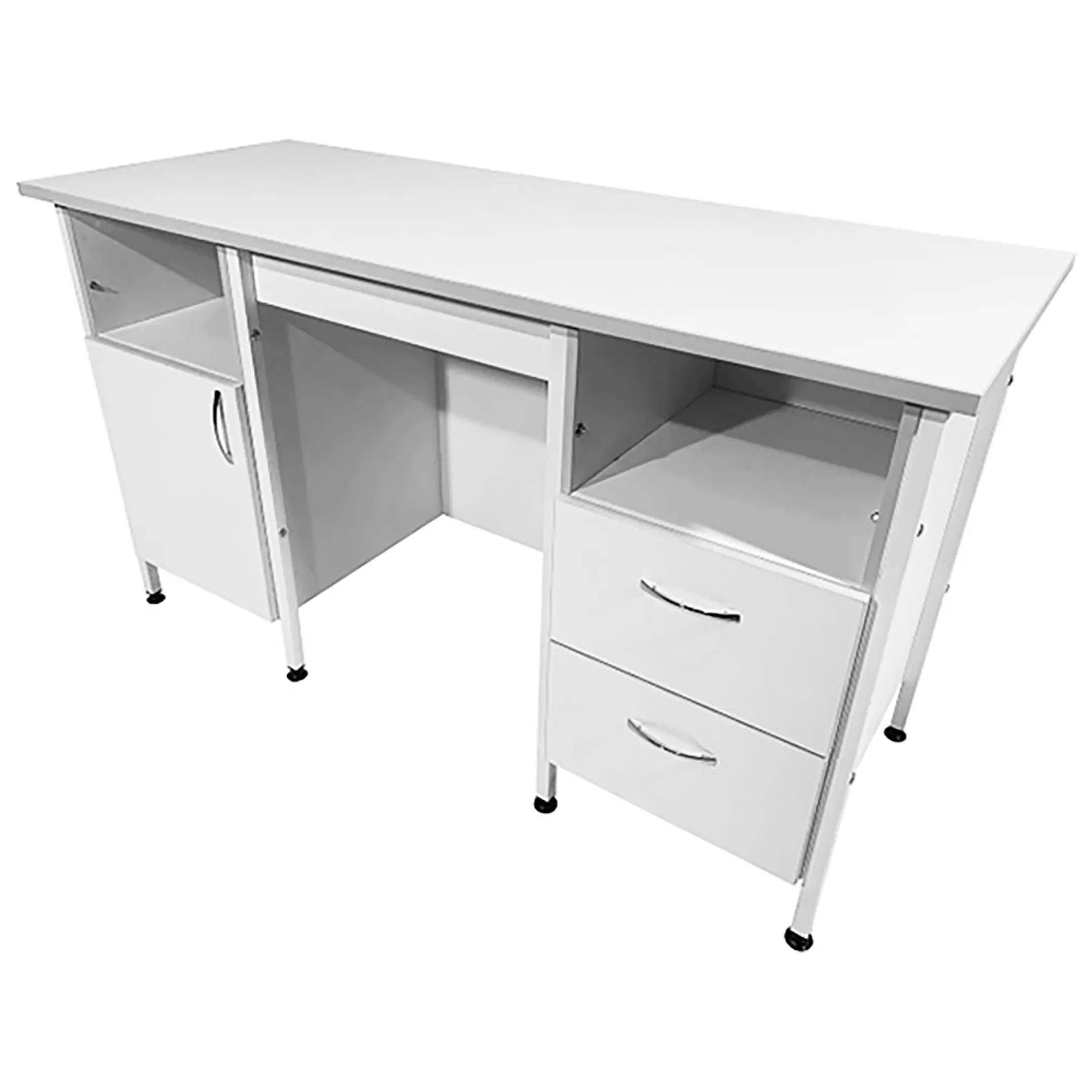 Стол лабораторный СЛ 12.020 (белый) представляет собой идеальное решение для организации эффективного рабочего места сотрудников как в лабораториях, так и в медицинских учреждениях. Модель оснащена двумя тумбами с открытыми нишами: одна с распашной дверкой и полкой, вторая с двумя выдвижными ящиками. Каркас выполнен из стального профиля, столешница из ЛДСП толщиной 22 мм.