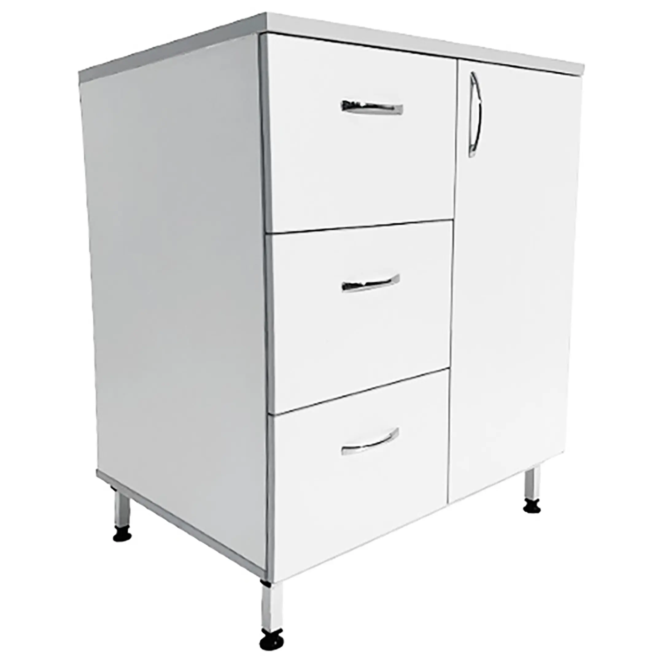 Стол-тумба лабораторная ТЛ 18.006 (белый) — это идеальное решение для организации хранения различных предметов, инвентаря и приборов в лабораториях или медицинских учреждениях. Модель оснащена тремя выдвижными ящиками (468х150х318 мм) и отделением с распашной дверкой и полкой (полка 373х570х16 мм). Каркас выполнен из ЛДСП толщиной 16 мм, столешница из ЛДСП толщиной 22 мм.
