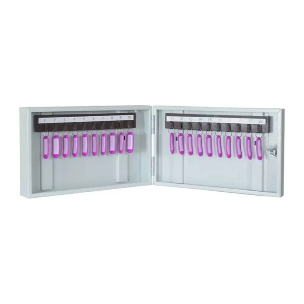 - Компактность для ограниченного пространства — ключница рассчитана на хранение 20 ключей, что делает её идеальным выбором для небольших офисов, кабинетов, студий или подсобных помещений с минимальным количеством точек доступа. Её малые габариты позволяют разместить шкаф даже на небольшом участке стены.