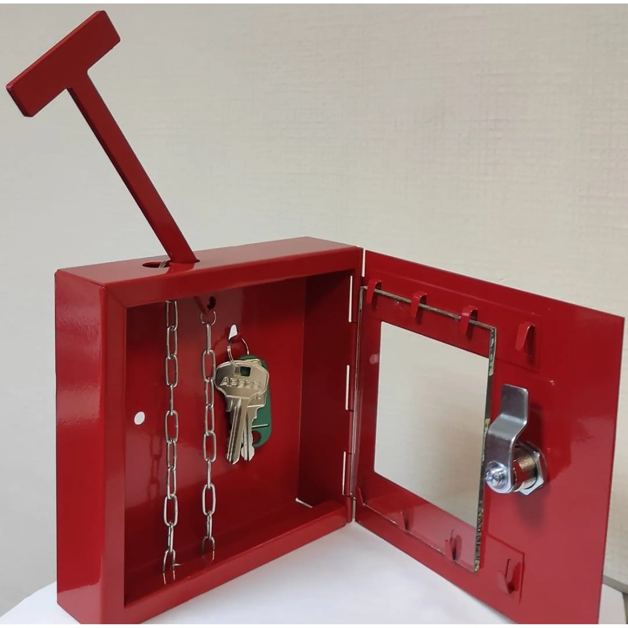 - Мгновенный доступ в чрезвычайных ситуациях — прозрачная стеклянная шторка позволяет визуально контролировать наличие ключа. Встроенный металлический молоточек обеспечивает возможность быстро разбить стекло и получить доступ к ключу в случае пожара или другой экстренной ситуации без поиска инструментов.