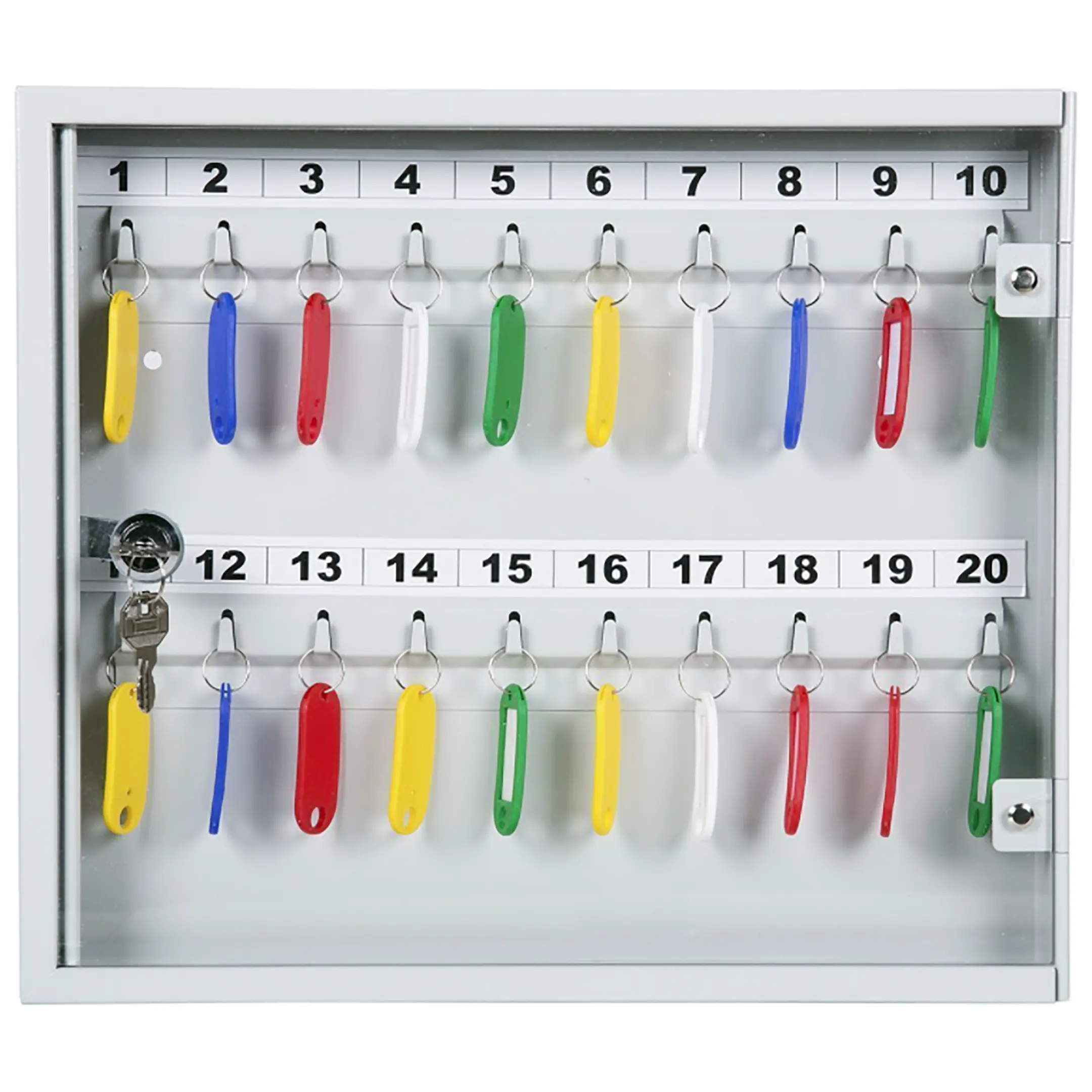 - Наглядность и мгновенный визуальный контроль — прозрачная дверца позволяет с первого взгляда оценить наличие и расположение всех ключей без необходимости открывания. Это обеспечивает оперативную проверку, быстрый поиск нужного ключа и предотвращает ошибки, связанные с его отсутствием на месте.
