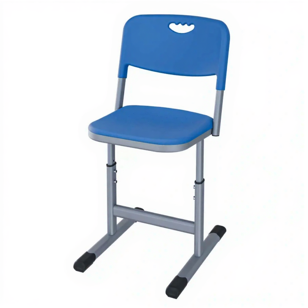 • Регулируемая высота — позволяет адаптировать стул под рост ученика и высоту стола, обеспечивая правильную посадку.