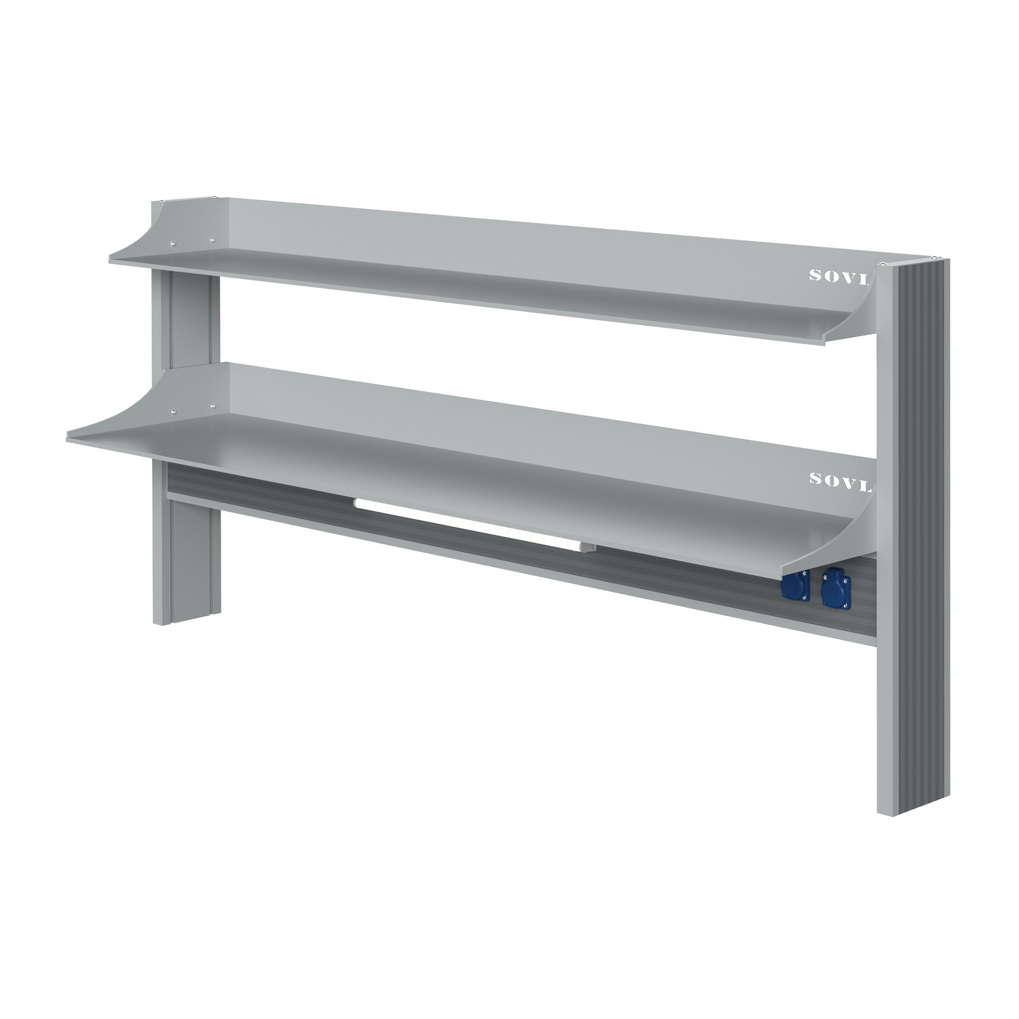 Технологический стеллаж для приборов низкий для пристенного стола Mod. 1800 ТСПРн — это специализированное лабораторное оборудование, устанавливаемое на пристенные столы и предназначенное для размещения лабораторных приборов, оборудования и принадлежностей. Модель оснащена тремя металлическими полками с высокими бортами, блоком электророзеток повышенной защиты и светодиодным светильником для местного освещения рабочей зоны.