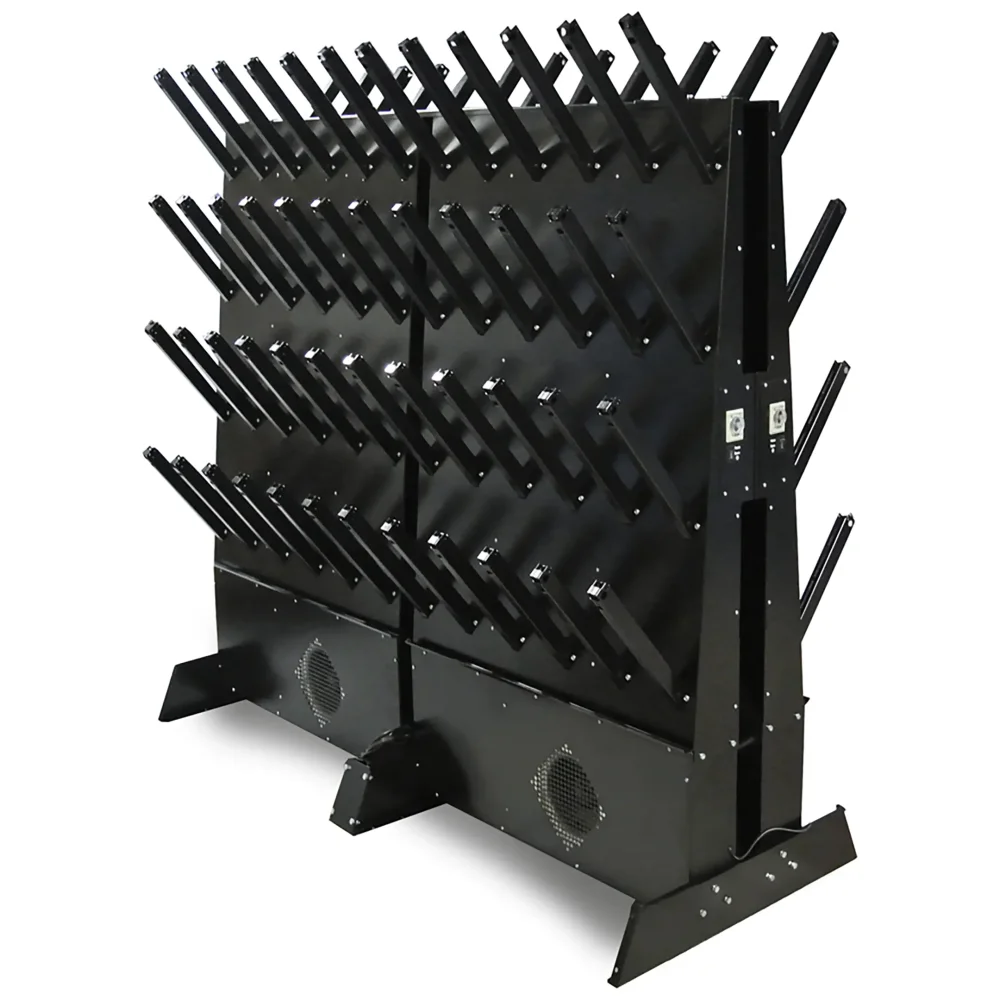 - Оптимальная вместимость и компактность — стойка рассчитана на одновременную сушку до 48 пар обуви, что идеально подходит для помещений среднего и большого размера. Конструкция эффективно использует доступное пространство, обеспечивая удобное размещение обуви без излишней громоздкости.