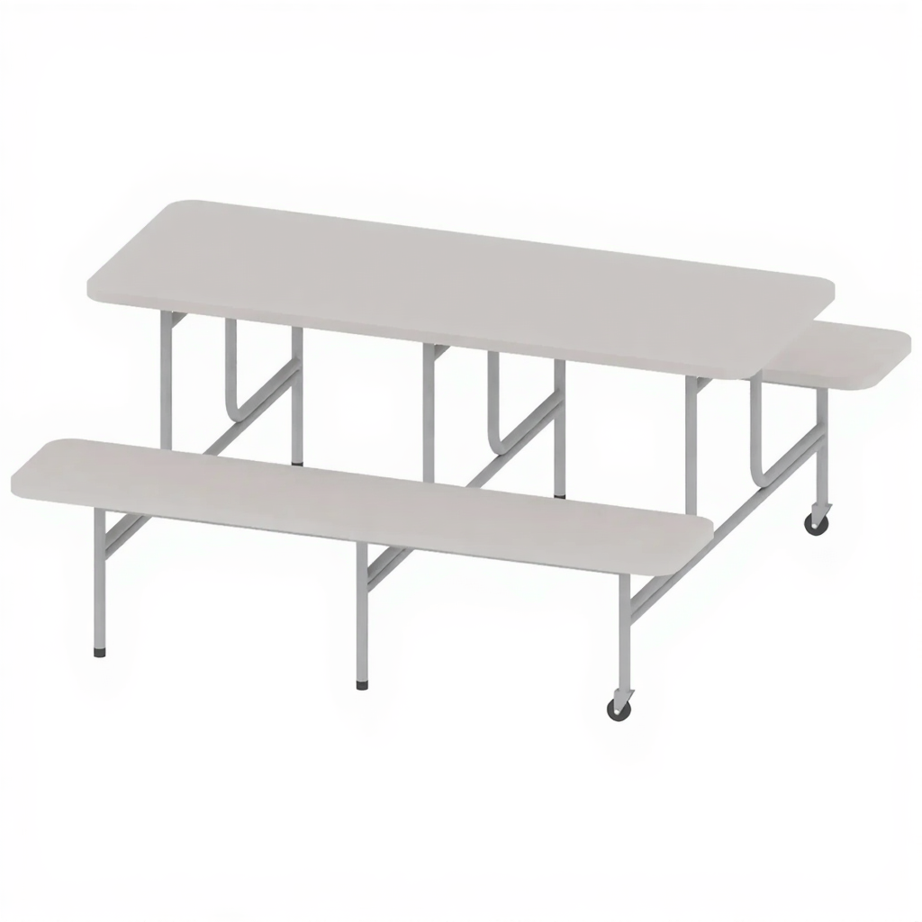Стол обеденный с 2-мя скамьями СТ-ШП-82 — это функциональный и прочный комплект мебели, предназначенный для организации удобного пространства в помещениях различного назначения. Изделие выполнено из качественной древесностружечной плиты толщиной 26 мм, обеспечивающей долговечность эксплуатации. Комплект дополняют две скамьи размером 420×1500×320 мм, выполненные из ДСП и оснащённые металлическими рамами для дополнительной устойчивости. Каркас всей конструкции выполнен из металла, гарантирующего прочность и надёжность даже при интенсивном использовании. Особенностью модели является наличие двух колёс с одной стороны стола, облегчающих перемещение мебели внутри помещения.