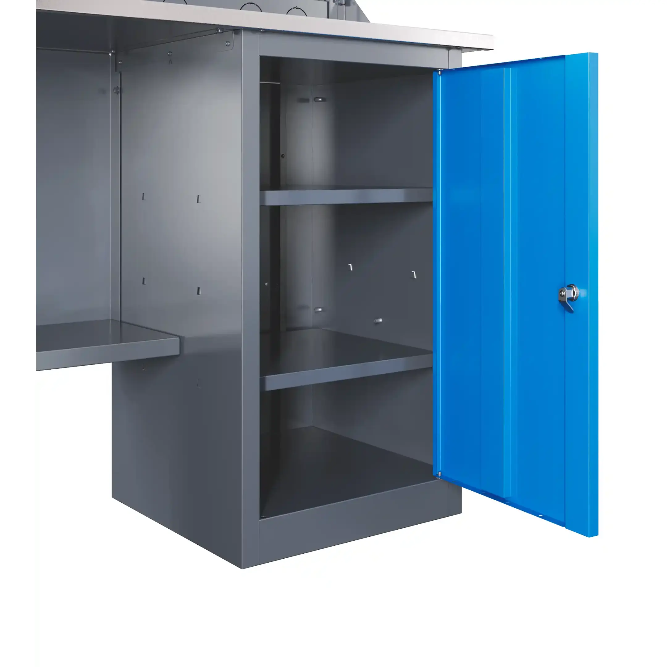 - Функциональный экран — двойной экран с перфорацией 12х12 мм с шагом 38 мм для размещения инструментов.
