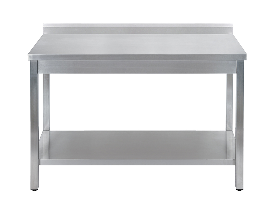 Стол изготовлен из нержавеющей стали AISI 430. Усилен сплошной полкой для размещения хозтоваров, габаритной посуды или ведер. Оснащен съемным бортом, что удобно для пристенного или островного размещения стола в производственном помещении.