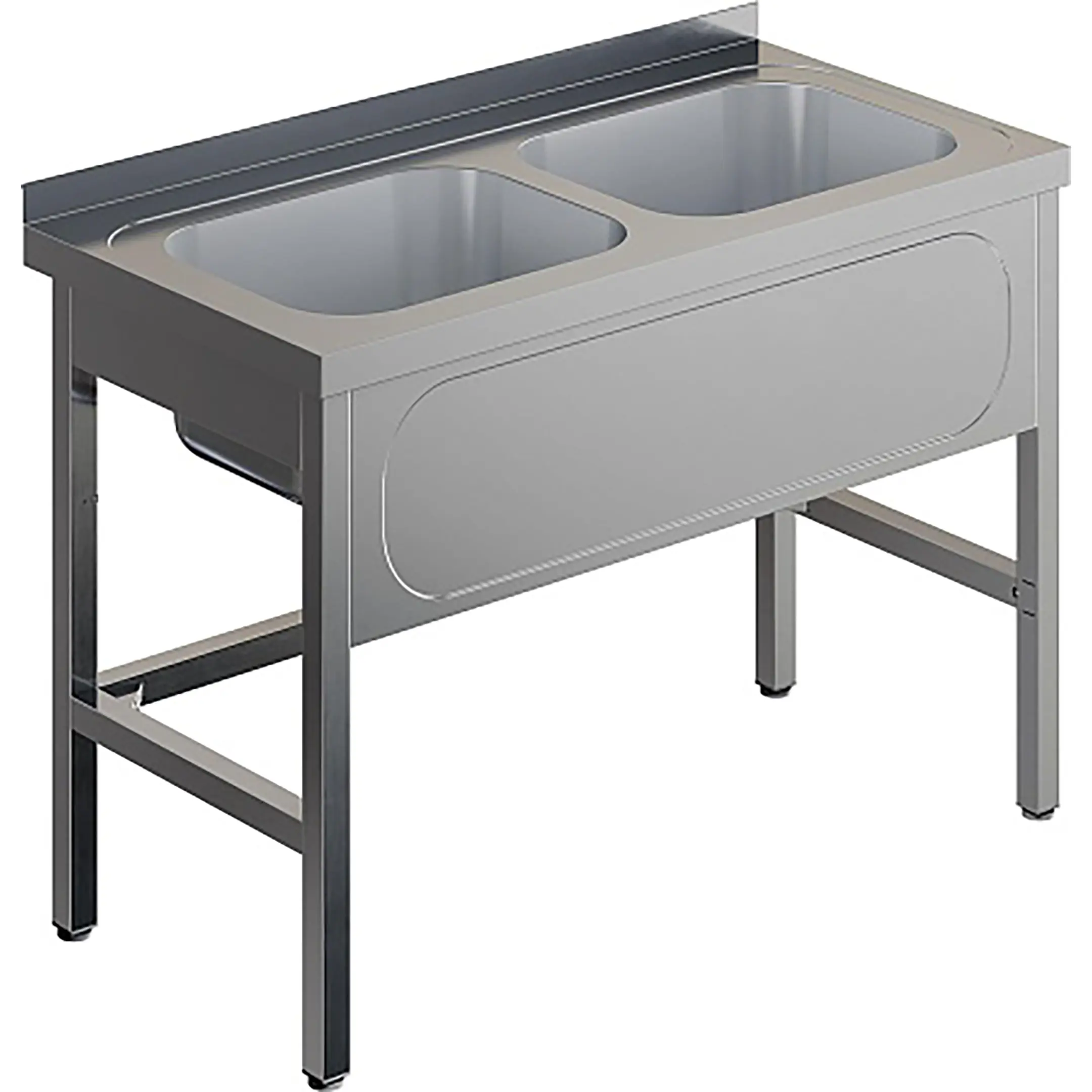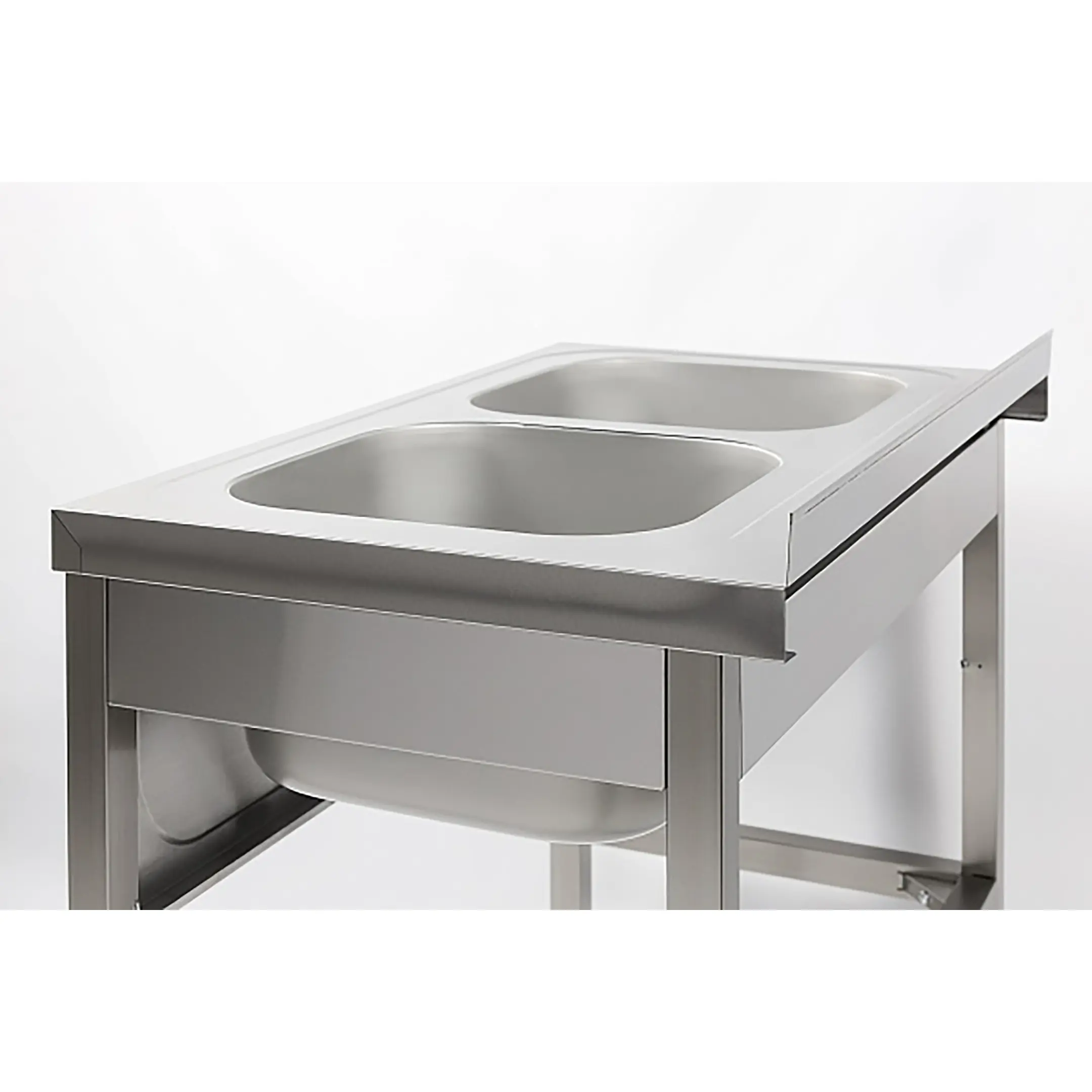 Ванна моечная двухсекционная цельнотянутая с бортом ВМЦ-2/10/7-Б разработана для применения в моечных отделениях предприятий общепита и торговли различного формата, пищевых производств и пищеблоков для мытья посуды, кухонного инвентаря, продуктов питания и рук персонала.