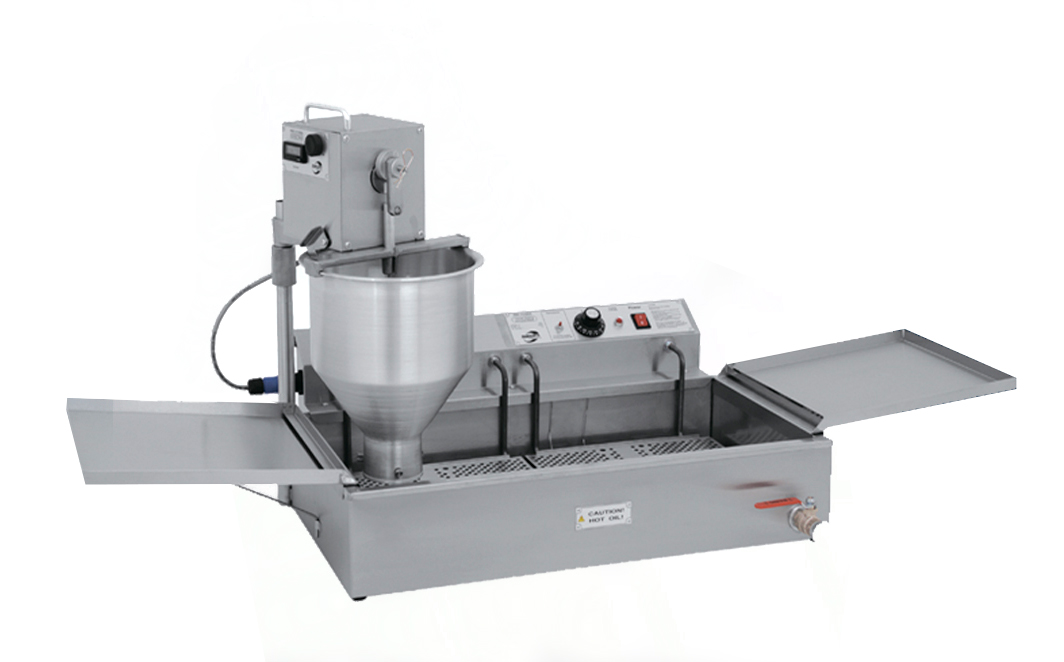 Полуавтоматический пончиковый аппарат , с 1 ванной и автоматическим делителем-дозатором, фискальной памятью, используется на предприятиях общественного питания и торговли для формирования и приготовления в разогретом масле (фритюре) пончиков. Аппарат имеет тот же механизм дозирования, что и полностью автоматическое пончиковое оборудование. Главное отличие полуавтомата состоит в отсутствии механизма переворота и выгрузки пончиков - эти операции совершаются вручную. Полуавтомат имеет минимум элементов управления, для работы с ним не требуется особых навыков. Небольшие габариты и малый вес позволяют удобно разместить полуавтомат на столе стандартного размера.