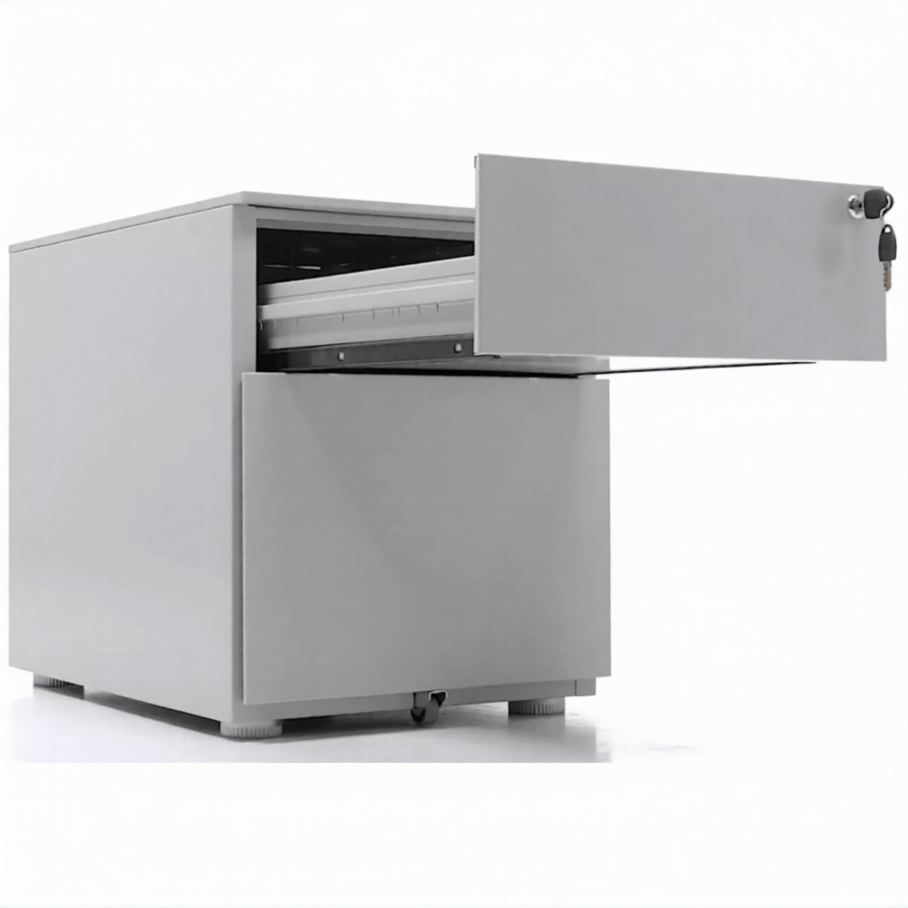 Опции: пластиковые лотки и металлический ящик для канцелярских принадлежностей и других предметов. Возможность комбинирования цветов: корпус + фасады ящиков и крышка (конструкция тумбы металл+металл). Или отделка фасадов ящиков и крыши тумбы ламинированной плитой ЛДСП (конструкция тумбы металл+ЛДСП)