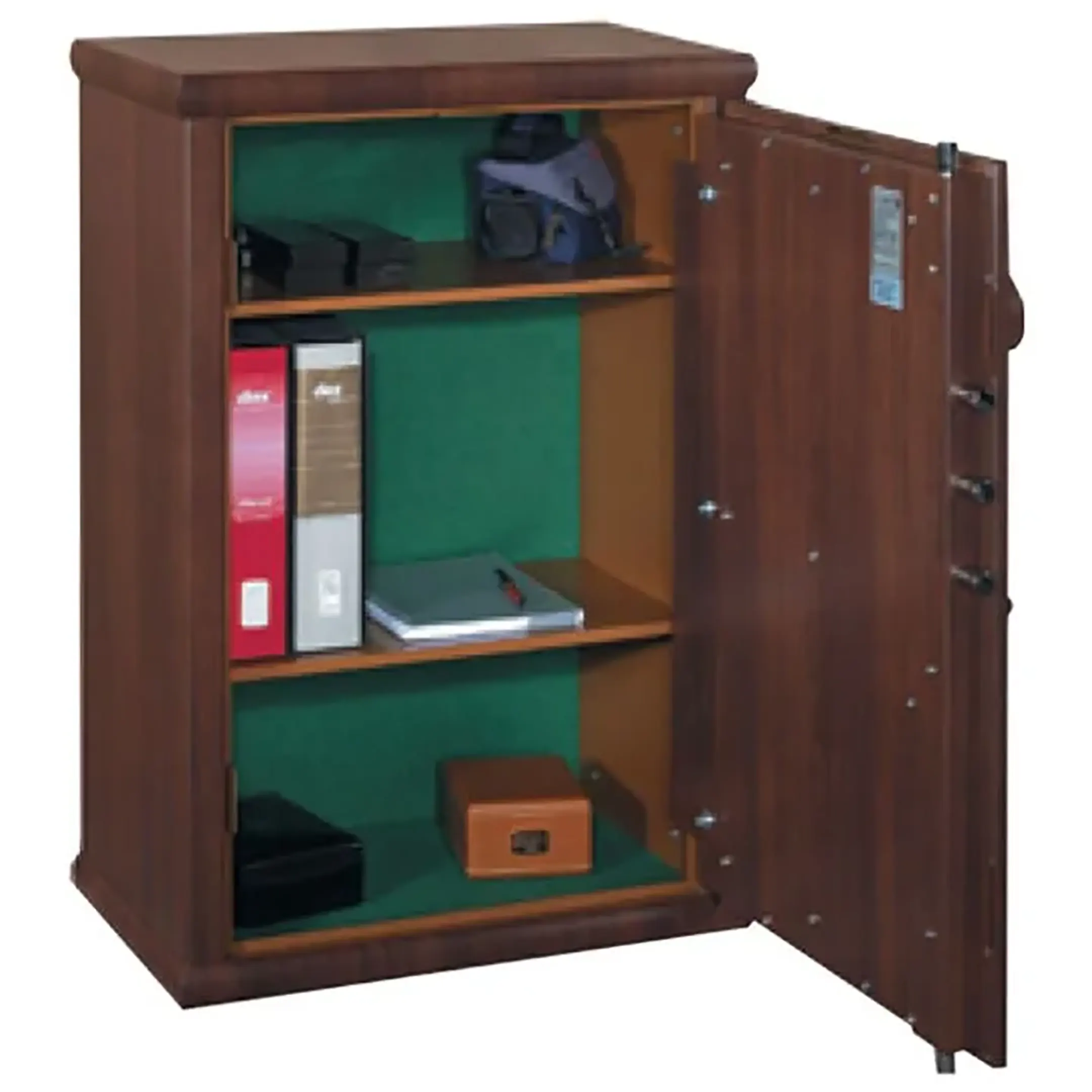 Высококлассное бронированное оборудование от итальянского производителя Metalk – это возможность защитить от посторонних деньги, документы и другие ценные вещи. Массивный сейф Panda 1026540, стилизованный под орех, прекрасно впишется в дизайн домашнего интерьера или офиса. Крепится к полу или стене и закрывается на кодовый электронный замок.