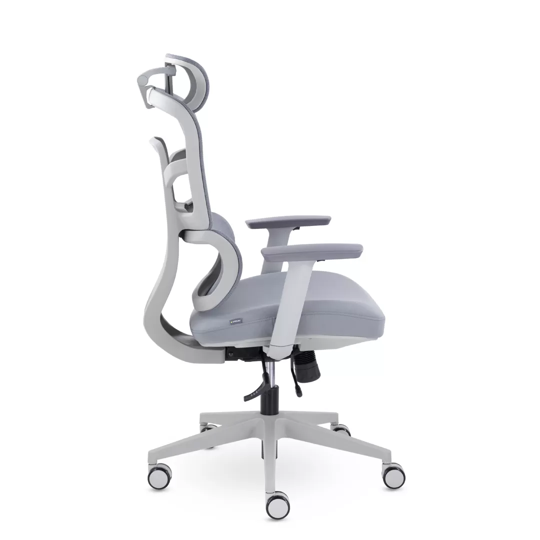- Современный дизайн — серый каркас и лаконичные линии создают аккуратный, стильный и профессиональный внешний вид кресла.