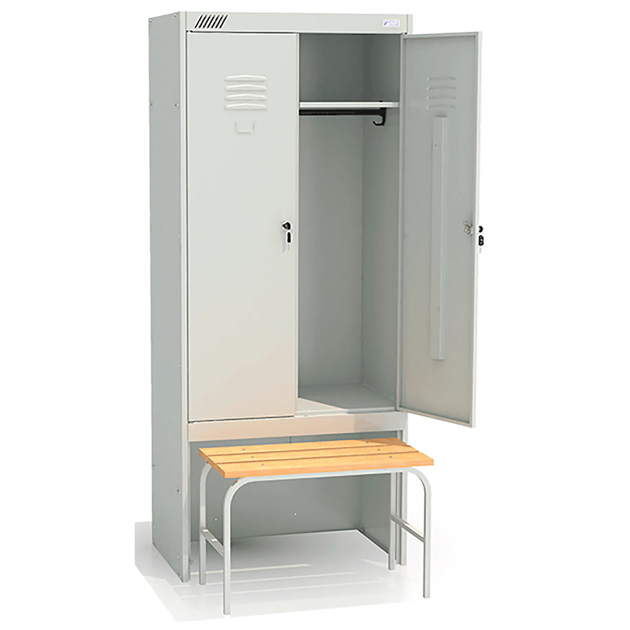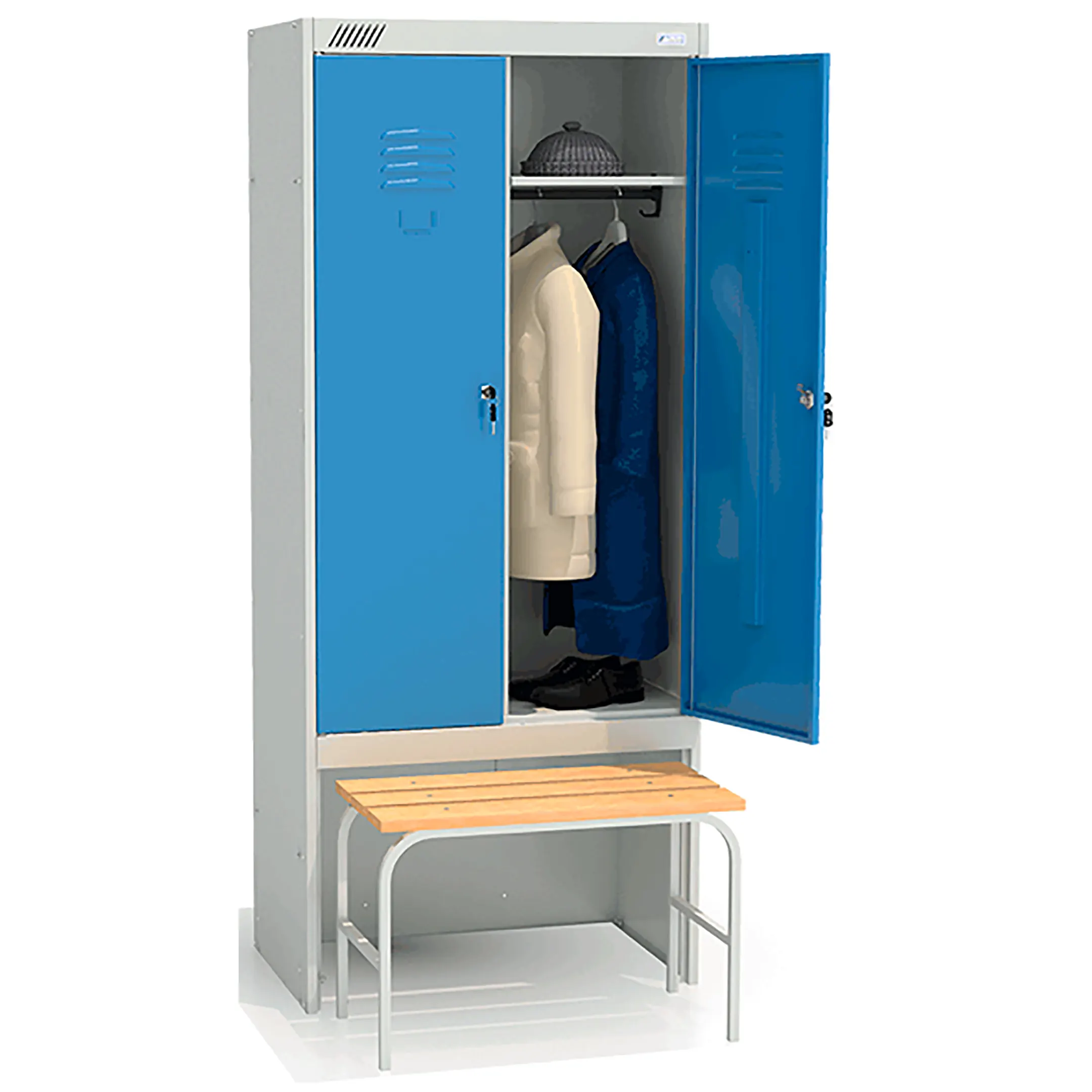 • комплектуется двумя замками повышенной секретности, двумя полками под головные уборы, двумя перекладинами, четырьмя крючками;