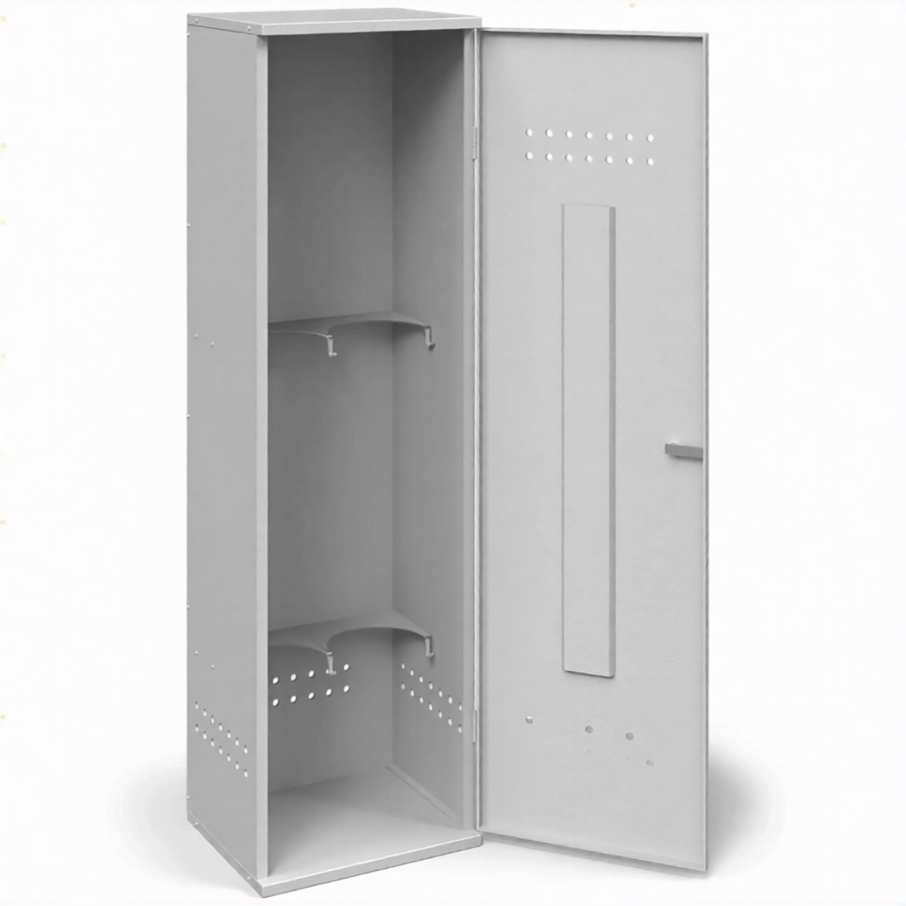 - Обеспечение базового уровня пожарной безопасности — металлический корпус, даже толщиной 0,8 мм, создает необходимый физический барьер между баллонами и возможными источниками открытого огня или искр. Наличие вентиляционных отверстий обеспечивает минимально необходимый воздухообмен для предотвращения скопления газа в случае микроутечки, что является главным приоритетом согласно простейшим правилам безопасной эксплуатации.