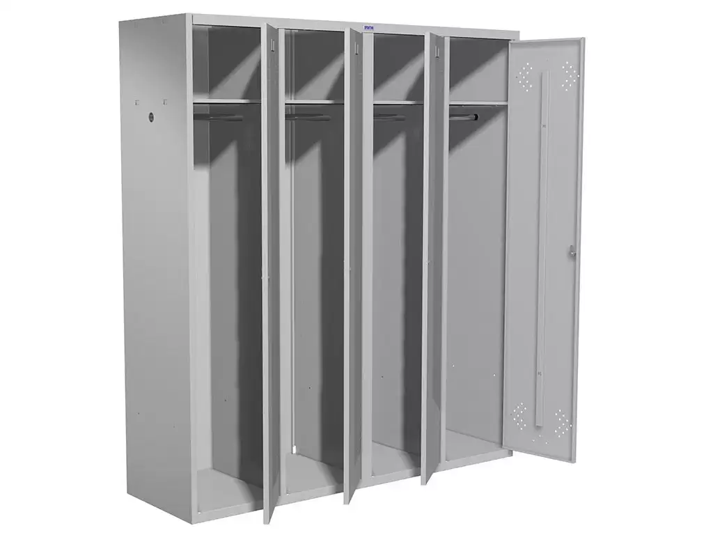 Шкаф для раздевалки ПРАКТИК LS-41 (двери от LS-21-80) предназначен для хранения одежды в производственных, спортивных и других помещениях, а также для организации камер хранения.