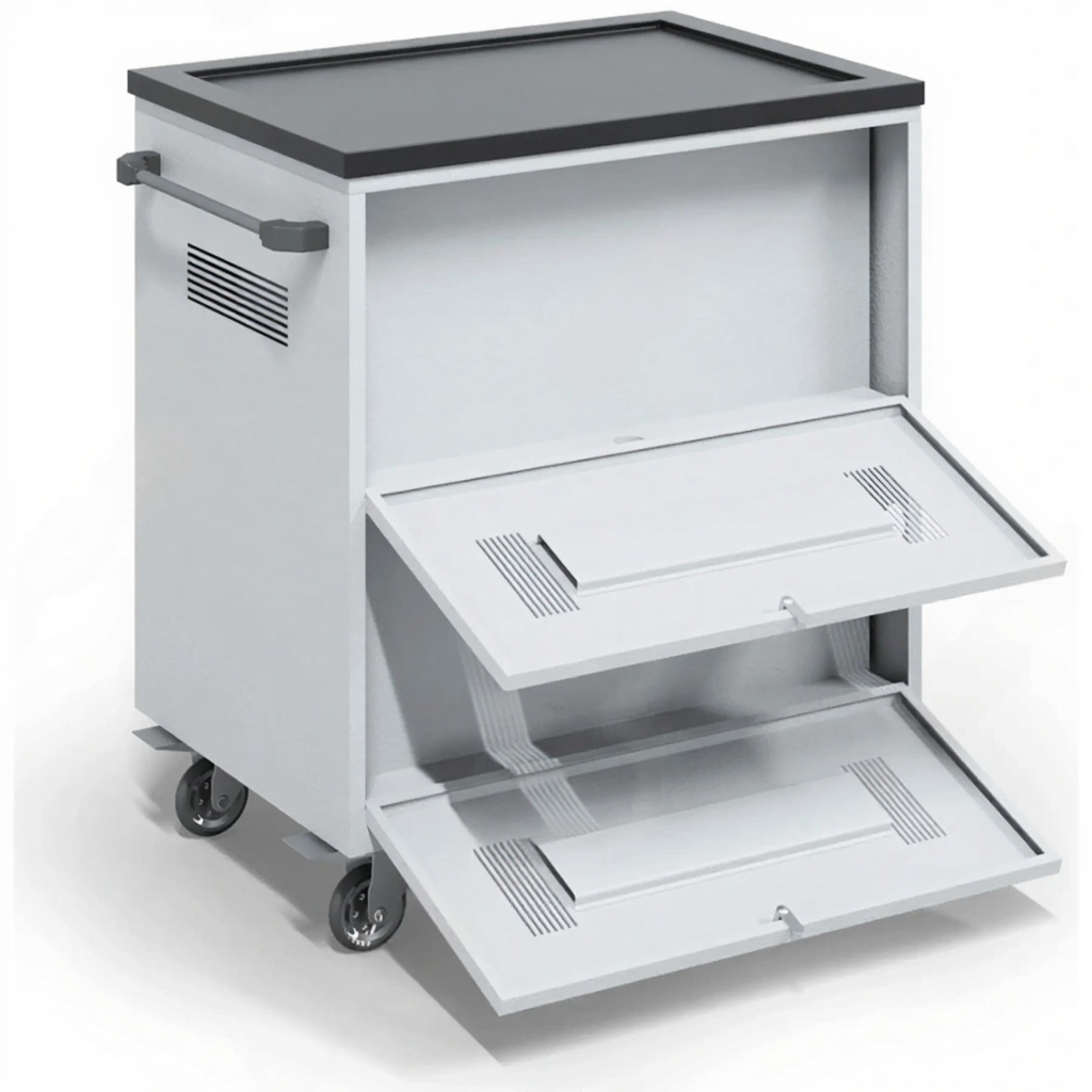 - Оптимизация времени и процессов — избавляет от необходимости индивидуальной зарядки и поиска каждого устройства. Преподаватель или руководитель может быстро раздать и собрать технику, экономя драгоценное учебное или рабочее время.