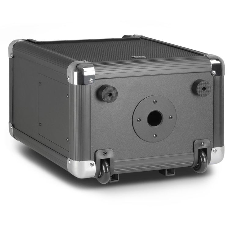 Активная акустическая система LD Systems Roadjack 10 – мобильная звуковая станция, оснащенная колесами и телескопической ручкой. Работает от аккумуляторного блока, который выдерживает до 20 часов беспрерывной работы. Активная двухполосная система Roadjack 10 с частотным диапазоном от 90 Гц до 18 кГц, пиковой мощностью 100 Вт, оснащена микшером с 3 входными каналами с индивидуальными регуляторами громкости, 2-полосным эквалайзером, реверберацией и мастер-громкостью. Встроенный проигрыватель обеспечивает потоковое воспроизведение звука при помощи Bluetooth, поддерживает также SD-карту и USB-накопитель. Меню проигрывателя включает в себя выбор языка и пресеты эквалайзера для нескольких жанров для мгновенной настройки звука. Roadjack 10 также имеет усиленные уголки для защиты корпуса, отверстие для крепления на стойке и удобный инфракрасный пульт дистанционного управления.